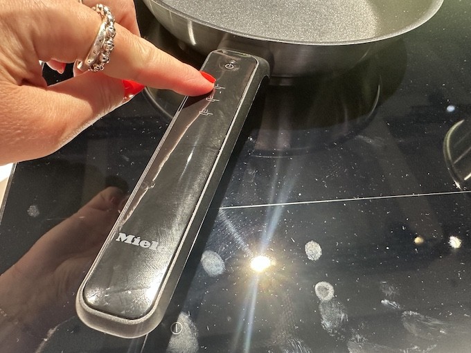 Maintenir des températures de cuisson précises et constantes pour obtenir des résultats parfaits n’est pas une nouveauté chez Miele. C’est en effet l’objectif de sa technologie TempControl, déjà implémentée dans certaines de ses tables de cuisson. Avec M Sense, la marque fait évoluer ses ambitions. La température n’est plus régulée à l’aide d’une sonde extérieure ou de capteurs intégrés dans la table, mais à partir des ustensiles qui deviennent les chefs d’orchestre de la cuisson. Ce système est composé d’une batterie de cuisine intelligente et de la table de cuisson KM 8000, les deux communiquant en Bluetooth. Pour s’assurer que sa poêlée ne brûle pas ou que l’eau de cuisson des pâtes ne déborde pas, rien de plus simple : l’utilisateur a juste à choisir l’ustensile adapté et à sélectionner la fonction adéquate. Les commandes tactiles sont directement placées sur les accessoires. Le système M Sense mesure et régule alors la température pour qu’elle reste constante. Pour l’instant, Miele prévoit de commercialiser une poêle et une casserole, qui disposent chacune de leurs propres commandes : la casserole propose les fonctions réchauffer, mijoter, faire bouillir, rôtir/dorer tandis que la poêle dispose des réglages doux, normal, fort et mijotage. Miele indique avoir déposé 20 brevets rien que sur cette innovation. Plusieurs tables devraient être compatibles avec la technologie M Sense, sans qu’on sache encore lesquelles seront commercialisées en France. La référence premium présentée à l’IFA était un modèle full zone avec détection intelligente des récipients. On sait que les modèles moins haut de gamme seront au minimum équipés d’une zone flexible PowerFlex. L’appareil pourrait être décliné dans plusieurs finitions (mate ou brillante) et différentes largeurs, de 60 à 90 cm mais là encore, Miele n’a pas encore précisé lesquelles seront disponibles sur le marché français. Le système M Sense sera lancé en France au printemps 2026.