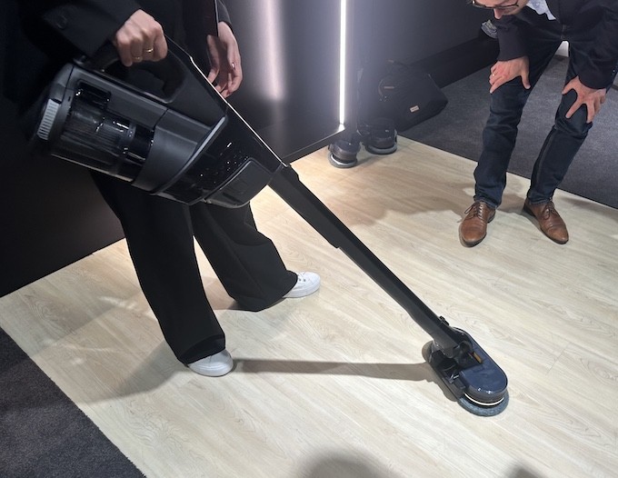 Dans le domaine du soin des sols, pour faire face à la déferlante d’aspirateurs laveurs qui débarquent sur le marché, Miele fait encore évoluer son modèle phare Triflex. En plus de ses accessoires traditionnels servant à dépoussiérer, l’aspirateur balai Triflex HX3 Plus Aqua est livré avec une nouvelle tête laveuse baptisée Aqua Twister Pro. Elle arbore deux patins rotatifs et un réservoir intégré d’une contenance de 300 ml, ce qui permettrait selon Miele de nettoyer jusqu’à 150 m2. L’idée est de conserver les qualités et performances du Triflex tout en y ajoutant le nettoyage humide pour finaliser les séances de ménage. La quantité d’eau dispensée est réglable selon trois niveaux, pour l’adapter au type de sol et à son état de saleté. Cet accessoire est agrémenté d’un bandeau de lumière Led pour rendre la poussière plus facilement visible dans les coins et sur les sols foncés.