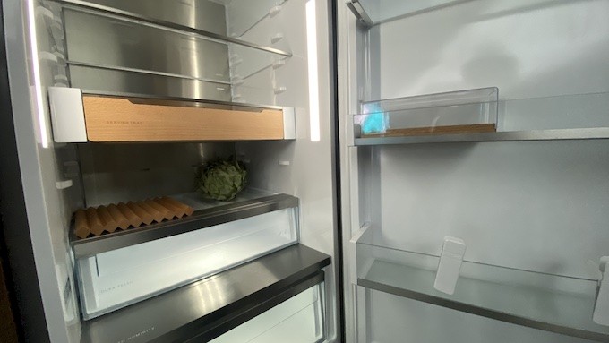 Quant au réglage de la température, ces réfrigérateurs utilisent un système qui s’apparente à de l’intelligence artificielle, détectant le nombre d’ouvertures de porte, leur durée, ainsi que leur récurrence… Il produit plus de froid en amont des ouvertures (par exemple si on rentre des courses toujours le même jour dans la même tranche horaire) pour éviter les variations de température dans la cavité, qui ont un impact à la fois sur la consommation électrique et sur la préservation des aliments. Cette gamme sera lancée au printemps 2026, période à laquelle Asko commercialisera également une gamme enchâssable « kitchen fit ». Les références qui la composent proposent une ouverture de porte sans débord et une évacuation de l’air chaud au niveau du socle, à l’avant.