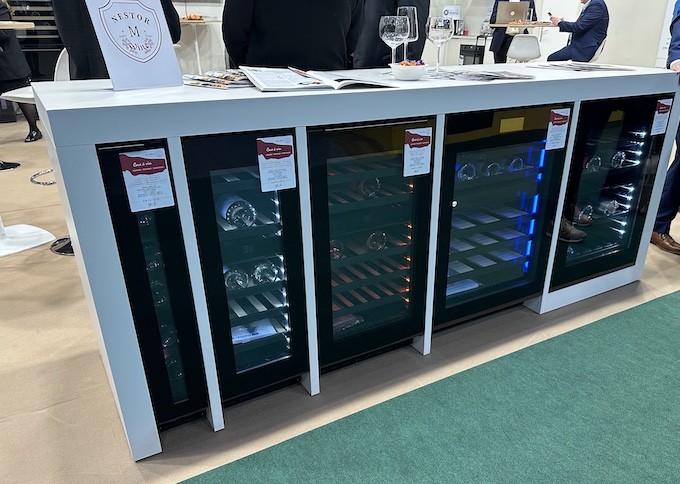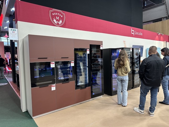 En revanche, dans l’univers des caves à vin, nous avons pu découvrir les principales nouveautés que Nestor M Wine va lancer sur le marché durant le premier semestre 2026. La plupart d’entre elles étaient en effet présentées sur le stand de Global Applius dans leur version finalisée. La marque Nestor M Wine proposera principalement des modèles encastrables, en accord avec son positionnement, même si quelques références pose libre viendront compléter le catalogue. Précisons que l’intégralité des caves de la marque sont développées en collaboration avec Jean-Marc Servais, responsable de ce département au sein de Global Applius. Ce dernier jouit de plusieurs décennies d’expertise dans l’univers des caves à vin et a déjà participé au développement de nombreuses gammes (notamment des marques Le Chai et Caviss).