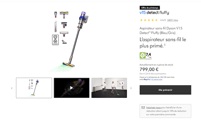 En l’occurrence, c’est justement la différence de critères et protocoles de calcul qui explique que certains appareils puissent obtenir le label Longtime alors que leur indice de réparabilité n’est pas optimal. C’est justement le cas des aspirateurs sans fil de Dyson ayant reçu ledit label. Il ne s’agit pas de tout le catalogue mais des références V16 Piston, V8 Cyclone et toutes celles de la gamme V15.